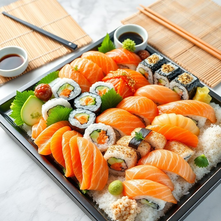 Este sofisticado combinado japonês apresenta uramaki de salmão, uramaki de pepino e abacate, nigiri de salmão e hossomaki de tilápia, substituindo o atum por tilápia para uma variação deliciosa e acessível. Ideal para compartilhar, oferece cerca de 36 peças frescas, proporcionando uma experiência completa da culinária japonesa em casa.