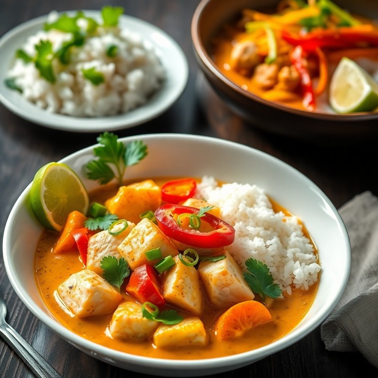 Ein aromatisches, cremiges Curry mit zarten weißen Fischfilets, exotischen Gewürzen und Kokosmilch. Dieses Gericht vereint die Frische von Limette und Koriander mit der Würze von Ingwer, Knoblauch und roter Currypaste. Perfekt für ein schnelles, würziges Abendessen, das in nur 30 Minuten auf dem Tisch steht.