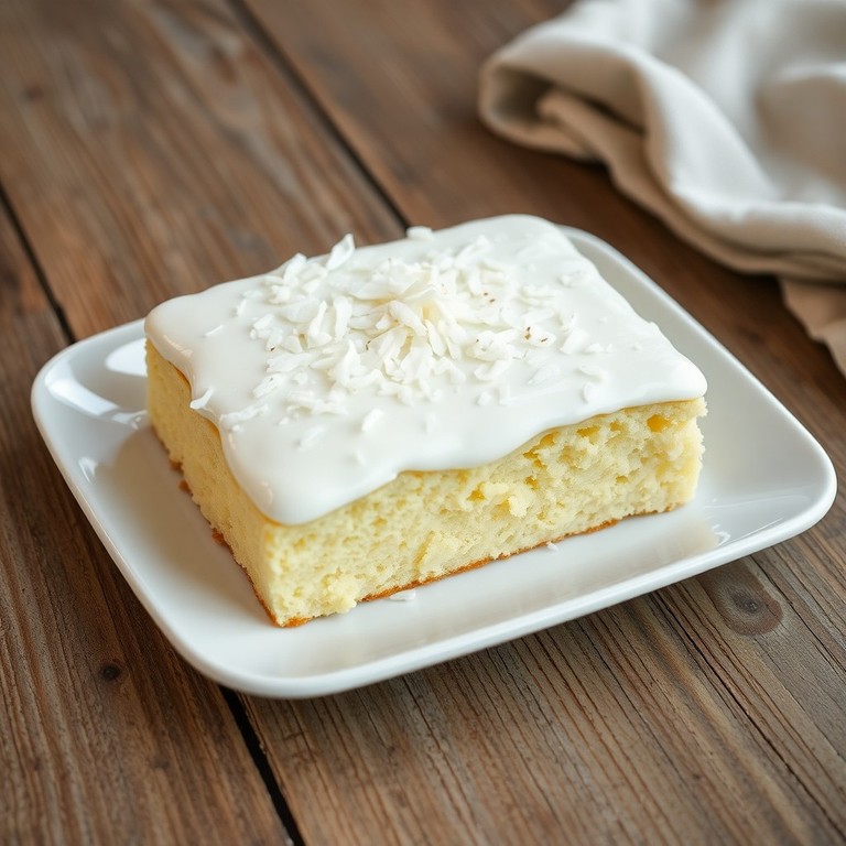 Um bolo úmido e refrescante, perfeito para sobremesa ou lanche, totalmente vegano, feito sem ovos nem manteiga, com cobertura generosa de coco ralado que realça seu sabor tropical.