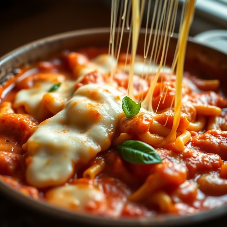 A kid-friendly, cheesy baked pasta dish featuring a rich and creamy tomato sauce, perfect for a quick and satisfying meal.