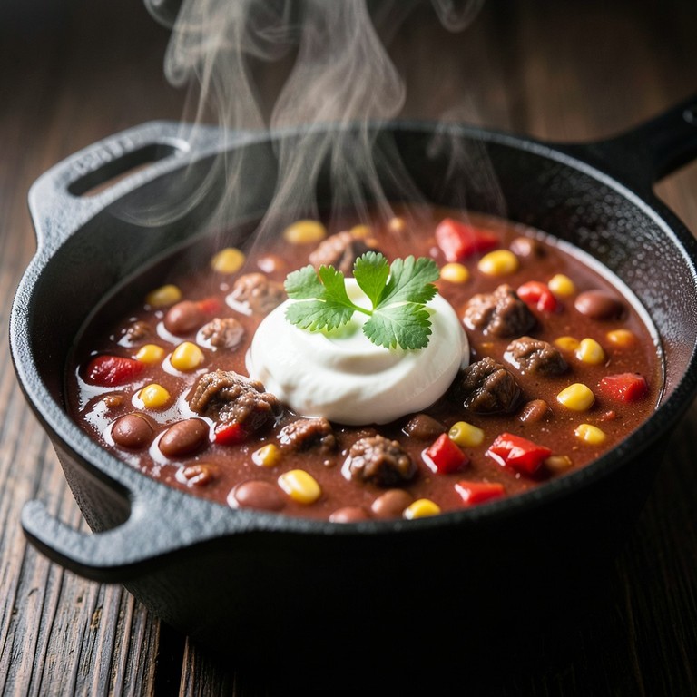 Ein klassisches, familienfreundliches Chili con Carne ohne Schärfe, das durch lange Kochzeit und aromatische Gewürze überzeugt und in nur einem Topf zubereitet wird.
