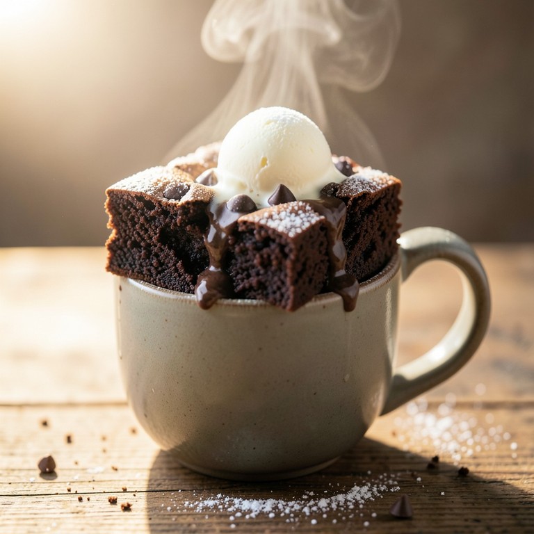 Um brownie rico e úmido, perfeito para aquela vontade de chocolate imediata, preparado em uma caneca e pronto em minutos.