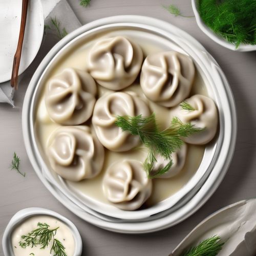 A classic Russian dish consisting of small dumplings filled with meat, served with a side of water.