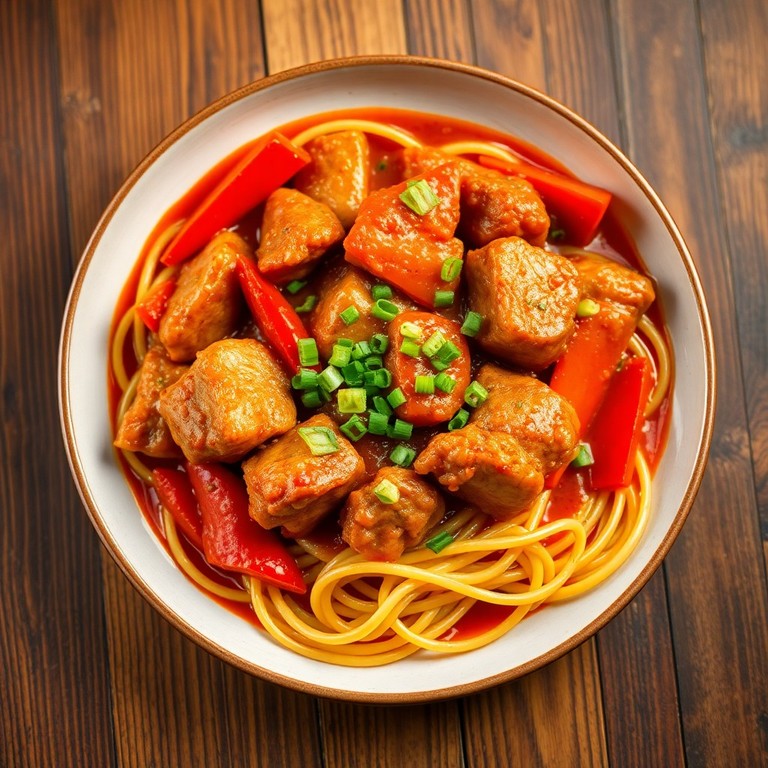 - Свинина со спагетти в томатном соусе по-китайски