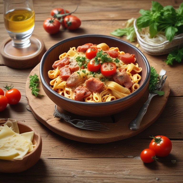 Макароны со свининой и сливочным сырным соусом (без томатов)
