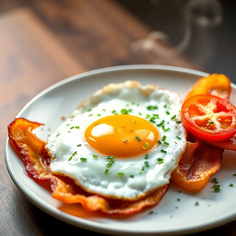 Яичница-Глазунья с Хрустящим Беконом и Свежей Зеленью