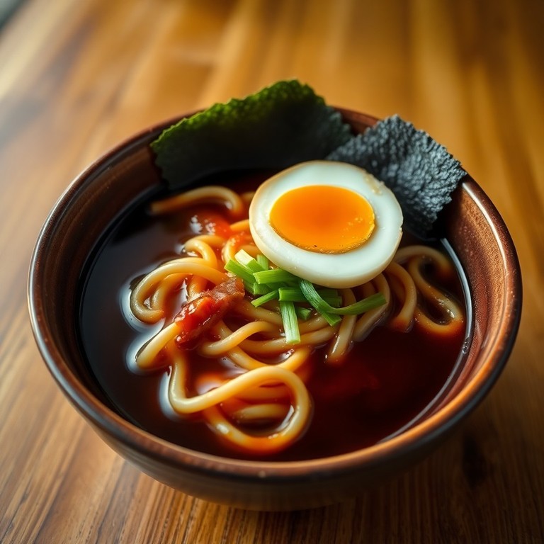 - Классическое японское рамен-блюдо с соевым соусом и пушистым яйцом