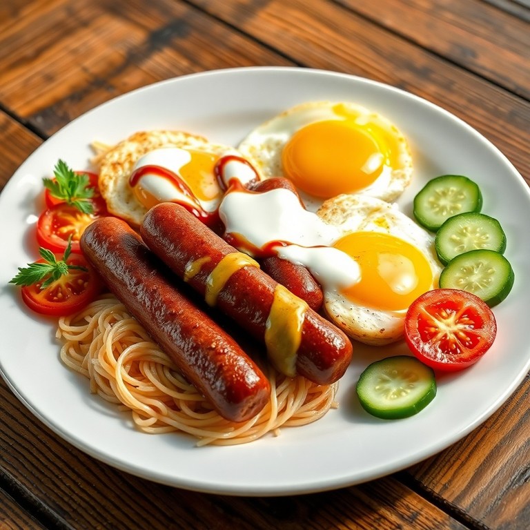 - Утренний завтрак с куринными сосисками и салатом