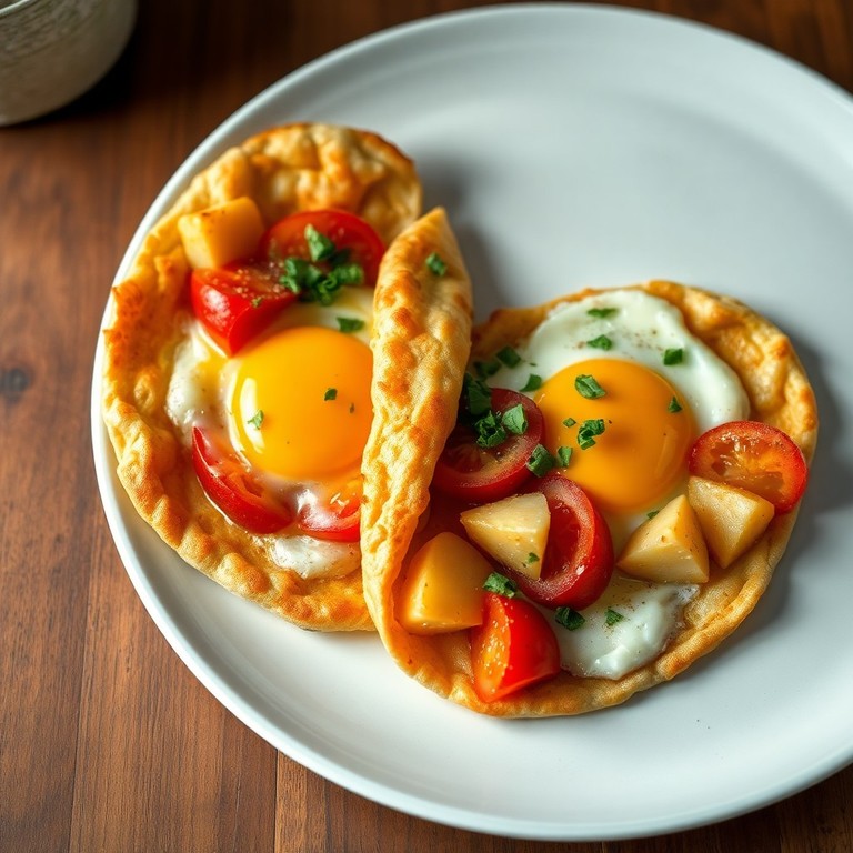 - Яичный завтрак в лаваше с картофелем и томатами