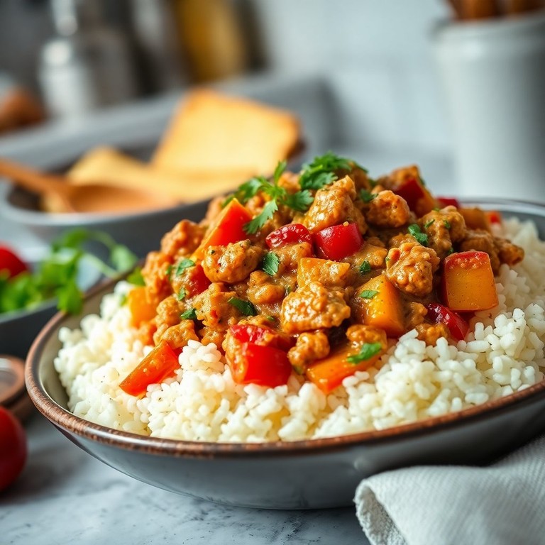 Куриный фарш с овощами в сливочном соусе