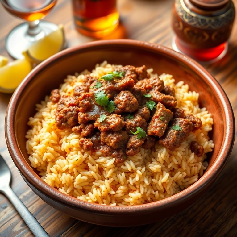 - Свиной фарш с ароматными специями и рисом по-мароккански