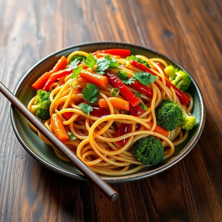 Gebratene Udon-Nudeln mit Gemüse und Sojasauce