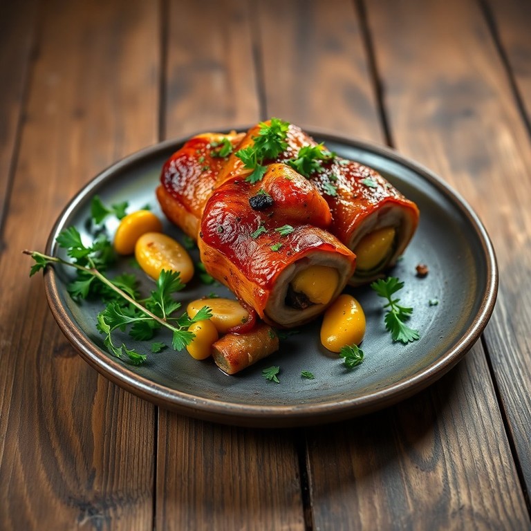 Lomo de Falda con Verduras Envueltas en Tocino