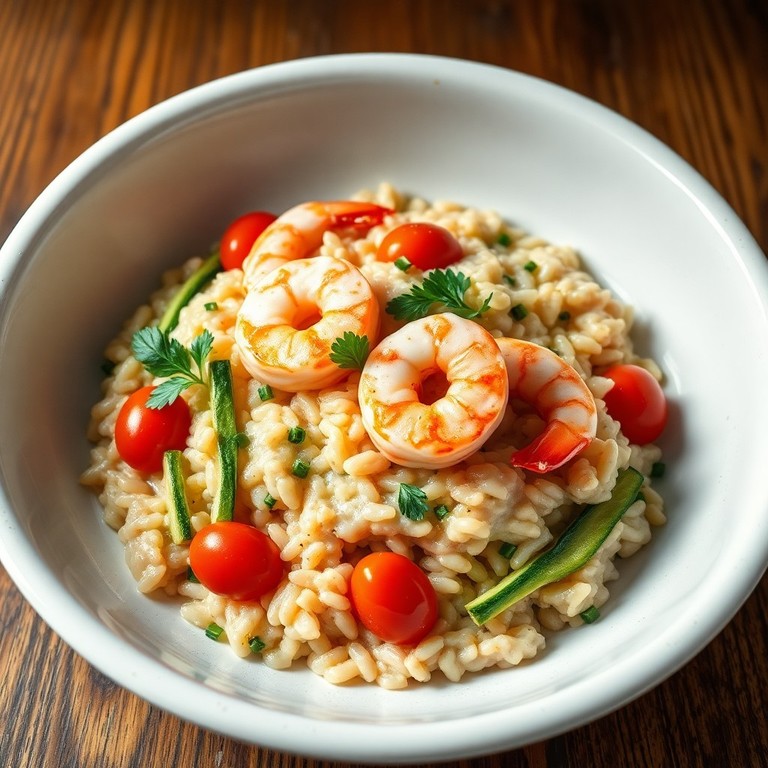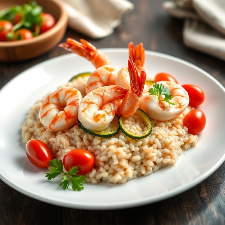 Risotto leggero di grano saraceno con gamberi, zucchine e pomodorini