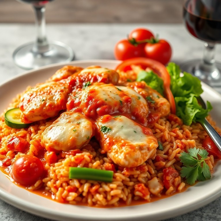 Курица с рисом в томатно-сырном соусе по-итальянски