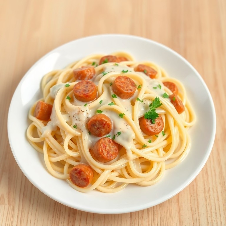 - Вермишель с сосисками в сливочно-филадельфийском соусе без сливок