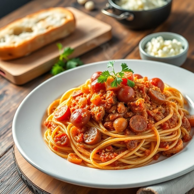 - Вермишель с сосисками в сливочно-филадельфийском соусе