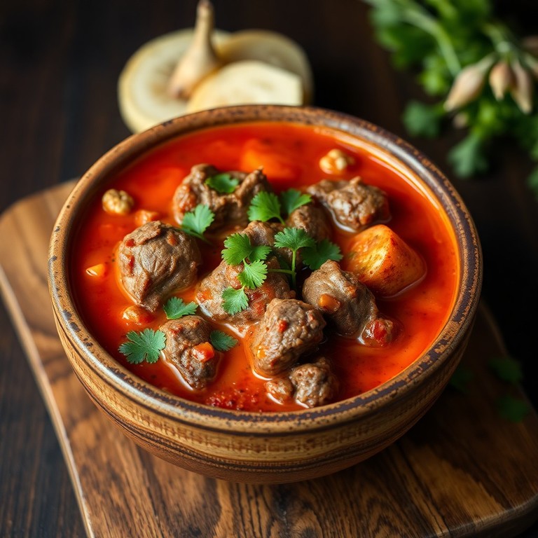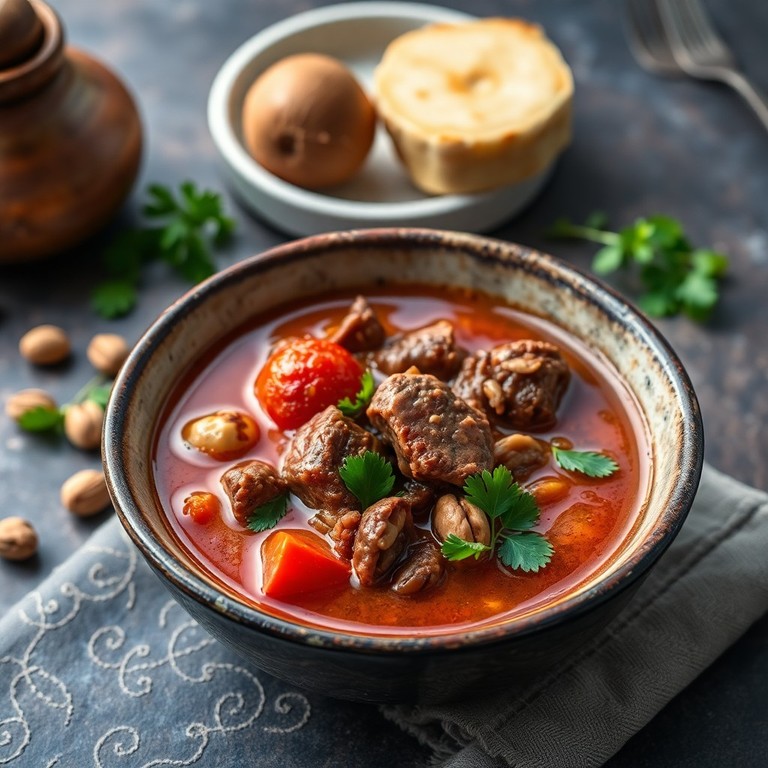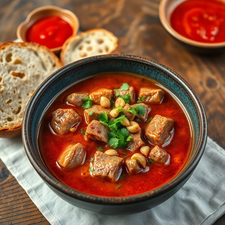 - Традиционный грузинский харчо с говяжьей грудинкой, фаршем и аджикой