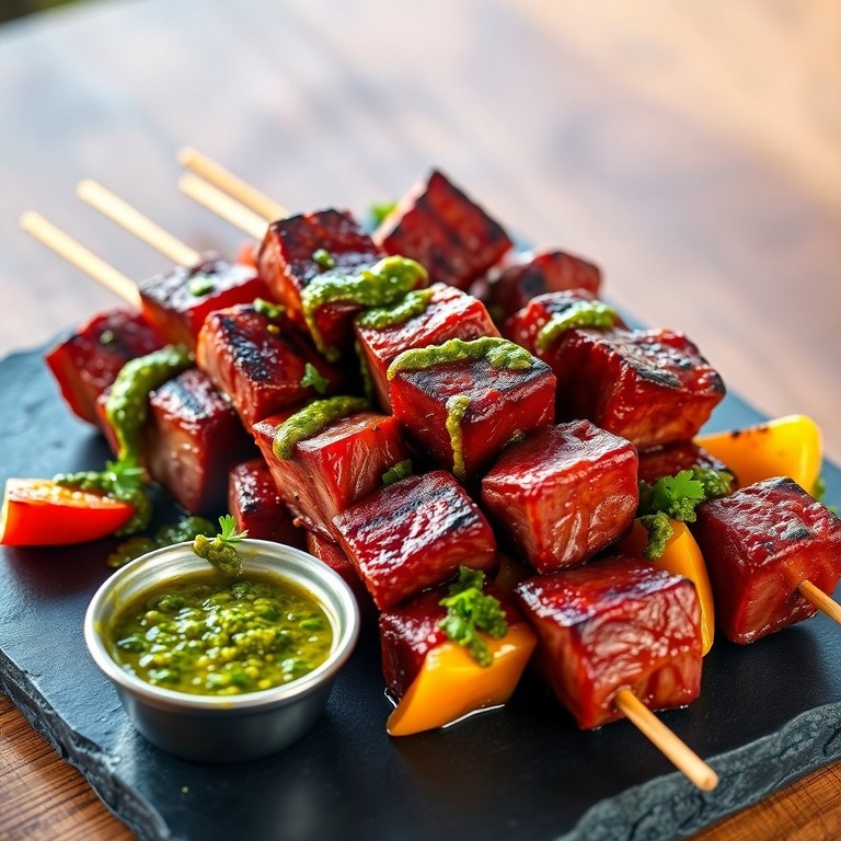 - Brochetas de Res Marinadas en Chimichurri con Verduras Asadas