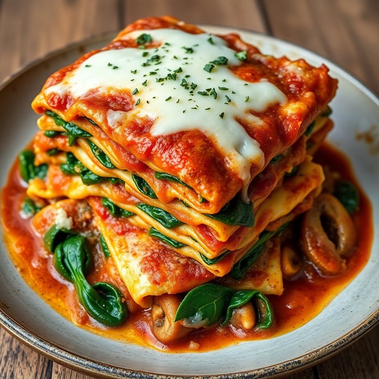 Herzhafte Lasagne mit Spinat und Pilzen
