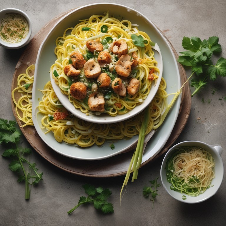 Паста из кабачков с курицей и азиатским соусом