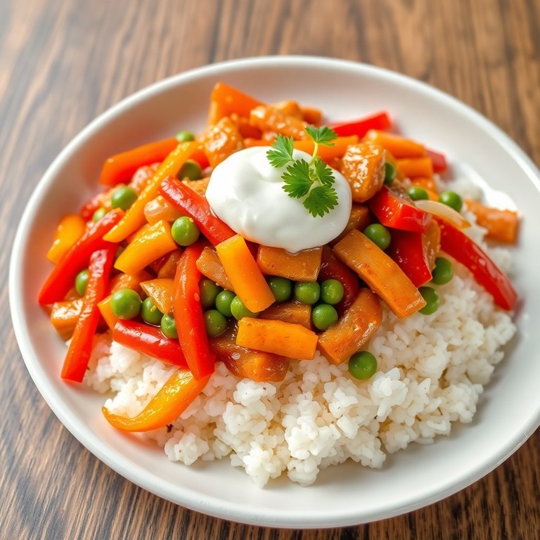 Легкий свиной стир-фрай с рисом и свежими овощами