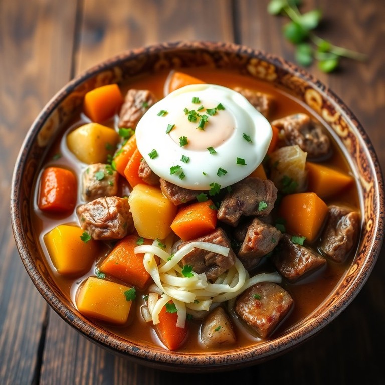 Сытное мясное рагу с овощами и яйцами
