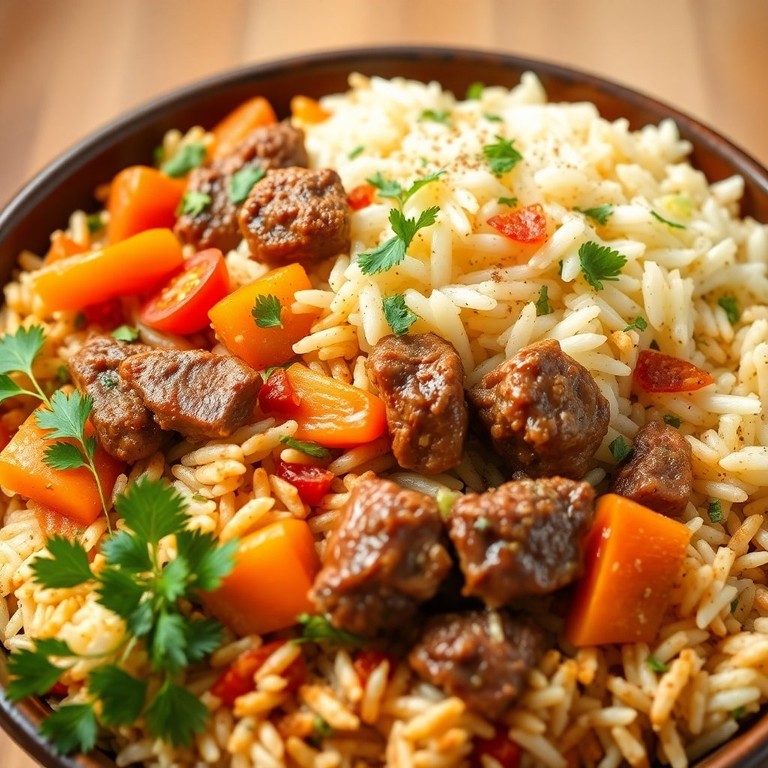 Ароматный плов с мясом и свежими овощами