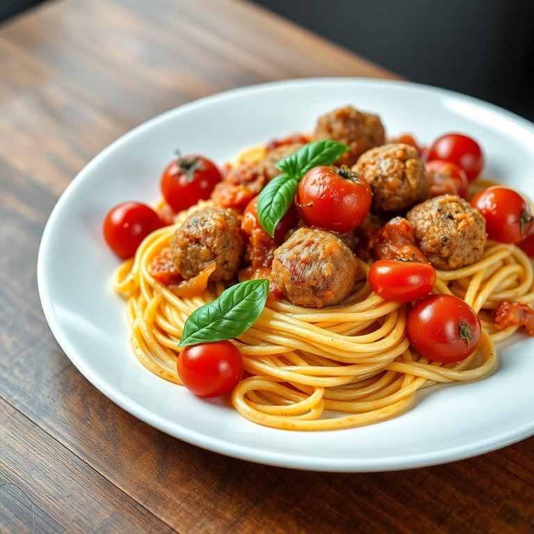 Итальянская паста с томатным соусом и мясными фрикадельками