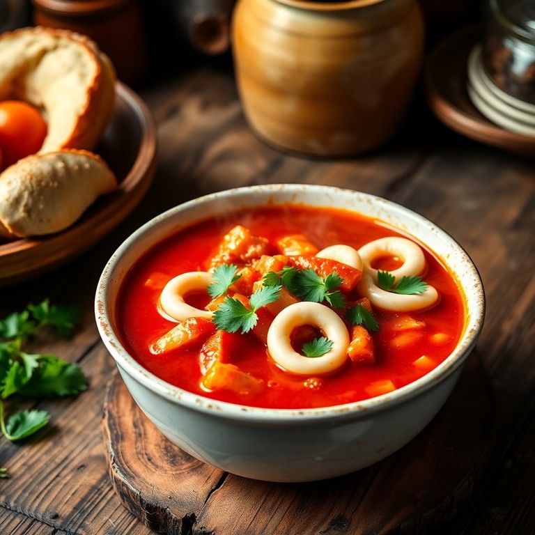 Морской томатный бульон с кальмарами