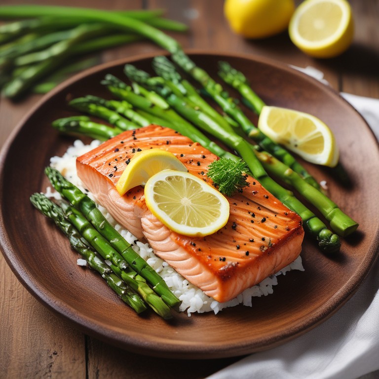 - Salmón a la Parrilla con Arroz Blanco y Espárragos