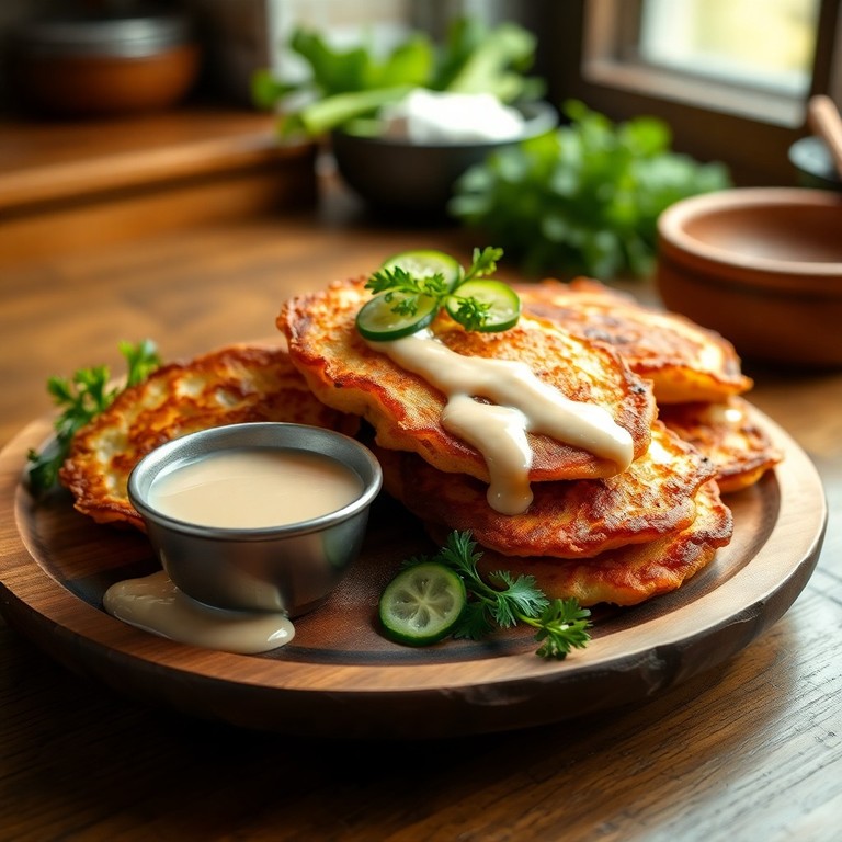 Драники с колбасой и соусом по-азиатски