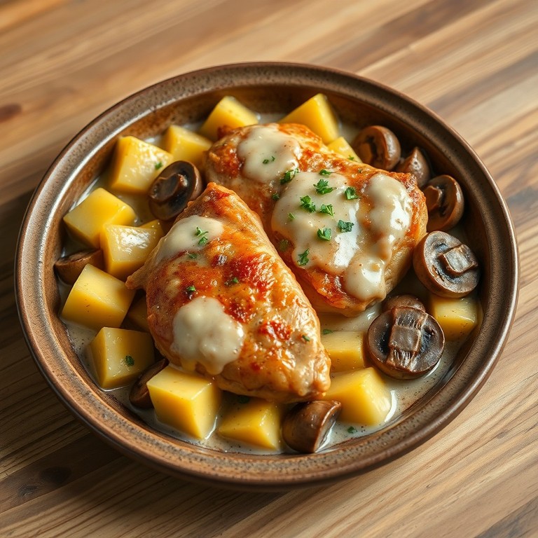 Куриные бедра с ананасами и шампиньонами в сливочном соусе