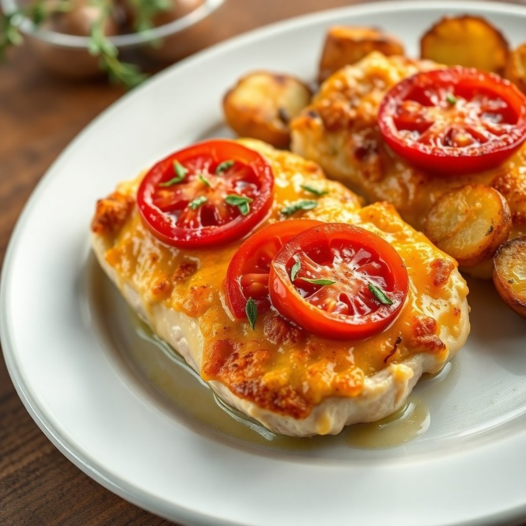 Куриная грудка с запечёнными помидорами и сырной корочкой
