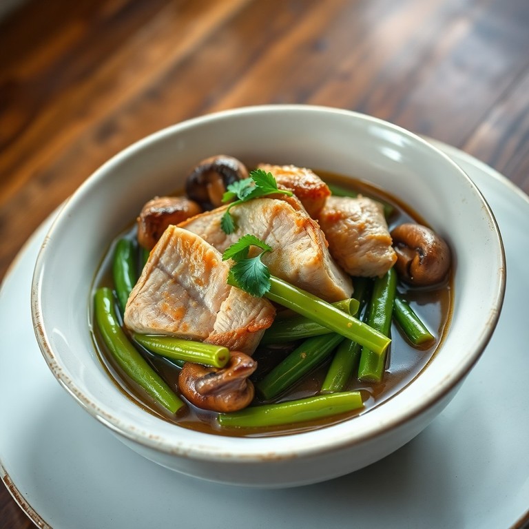 Индейка, тушеная с грибами и стручковой фасолью