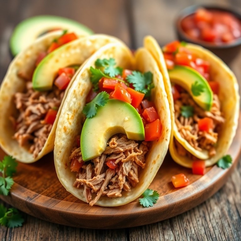 Tacos de Cerdo con Aguacate y Salsa de Tomate