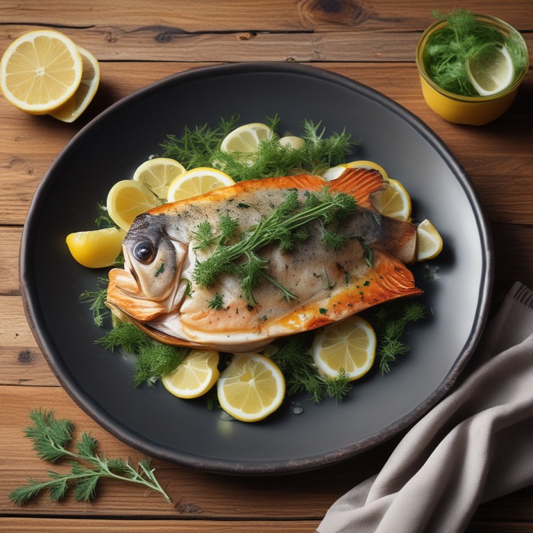 Запечённая морская рыба с лимоном и травами