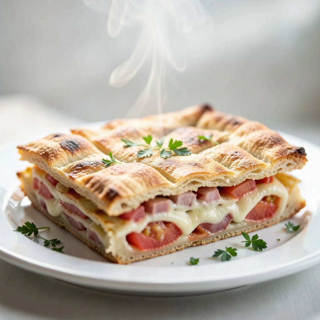 Ленивый пирог из лаваша с ветчиной и томатами