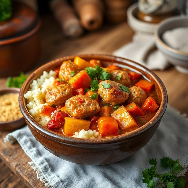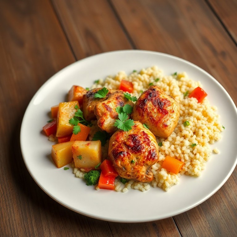 Курица с овощами и кус-кусом в пряном соусе