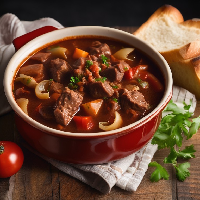 Ein klassisches Gulaschrezept mit einer Mischung aus Rind- und Schweinefleisch, das herzhaft und köstlich ist.