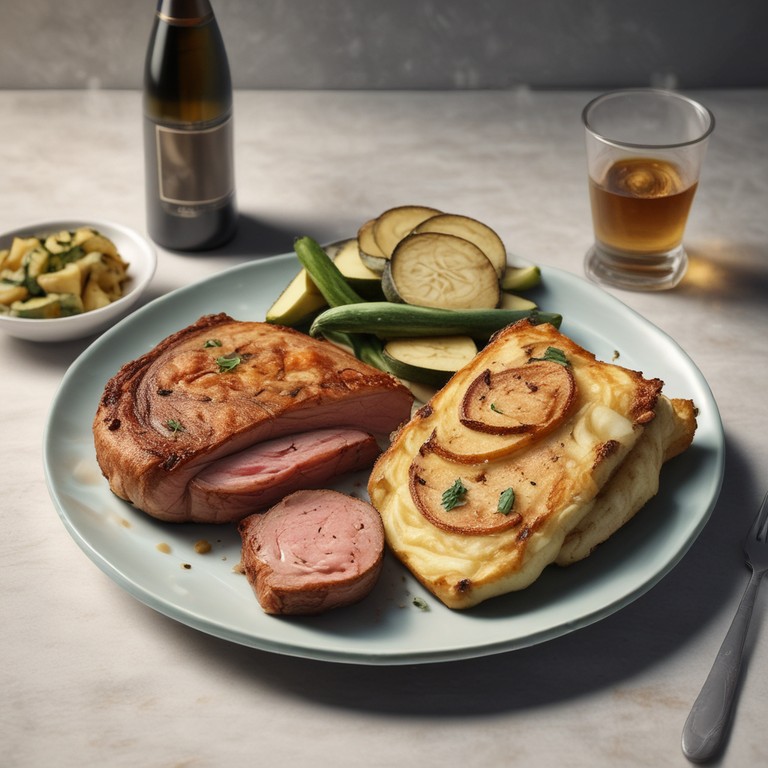 Un plat classique français, idéal pour un dîner confortable. La viande tendre est accompagnée d'un gratin dauphinois crémeux et de courgettes rôties pour un repas équilibré et savoureux.