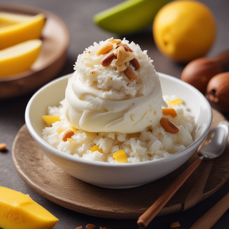 A delightful fusion of creamy rice pudding and refreshing ice cream flavors, perfect for a unique and satisfying dessert experience.