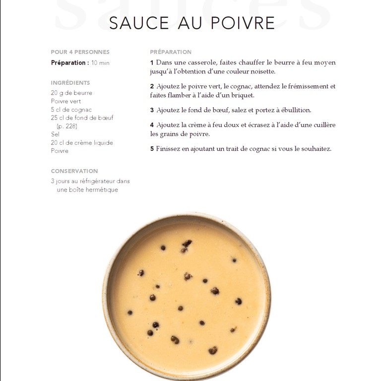 Une sauce au poivre classique avec une touche de poivre vert, parfaite pour accompagner vos viandes.