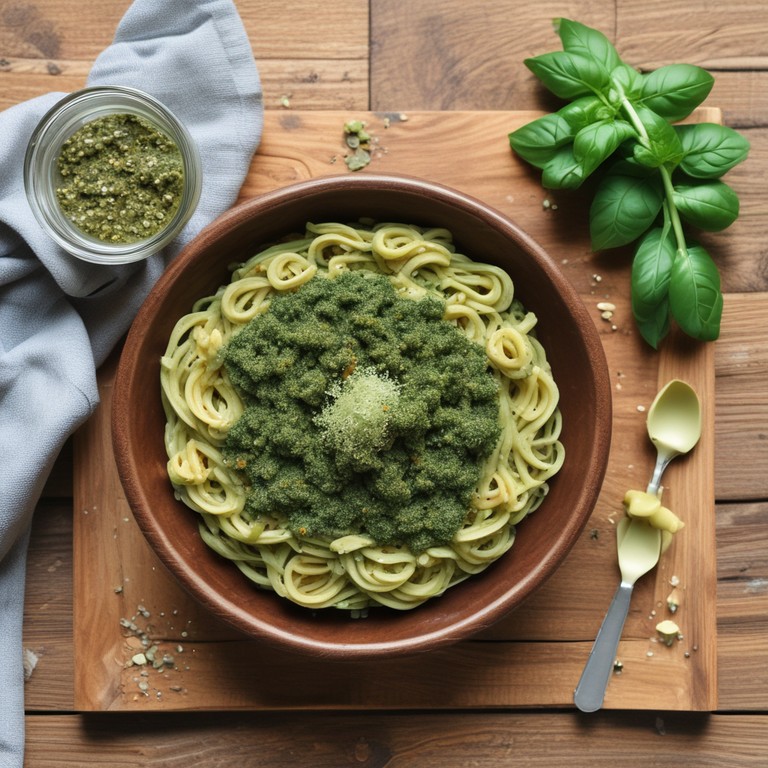 A delicious and nutritious pasta dish featuring a creamy hemp seed pesto, perfect for a quick weeknight dinner or a healthy meal prep option.