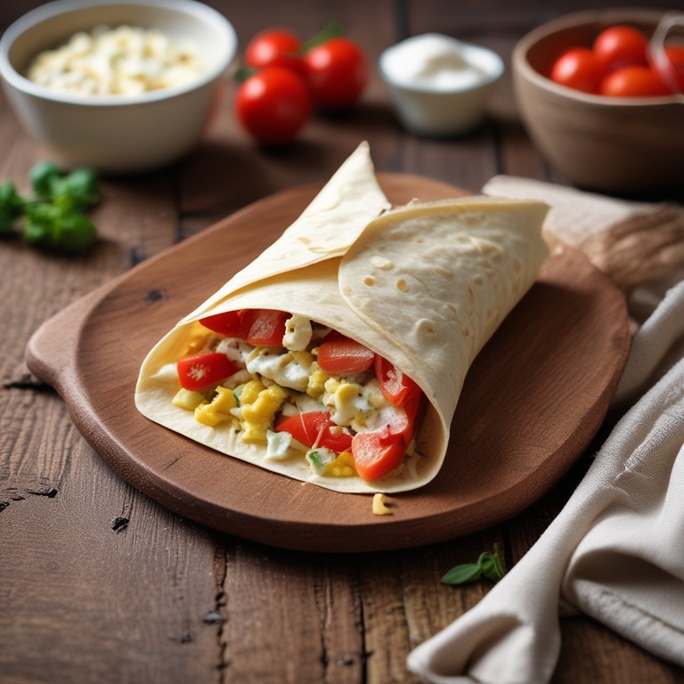Вкусный лаваш с сулугуни и помидорами, идеально подходит для завтрака или легкого перекуса.