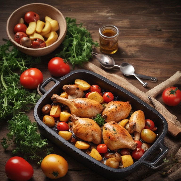 Это блюдо сочетает в себе нежное куриное филе, хрустящий картофель, ароматные грибы и свежие помидоры, запечённые до золотистой корочки. Идеально подходит для семейного ужина!