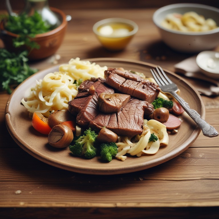 Это блюдо сочетает в себе нежную говядину, ароматные шампиньоны и свежие овощи, приготовленные в сливочном соусе. Идеально подходит для семейного ужина.