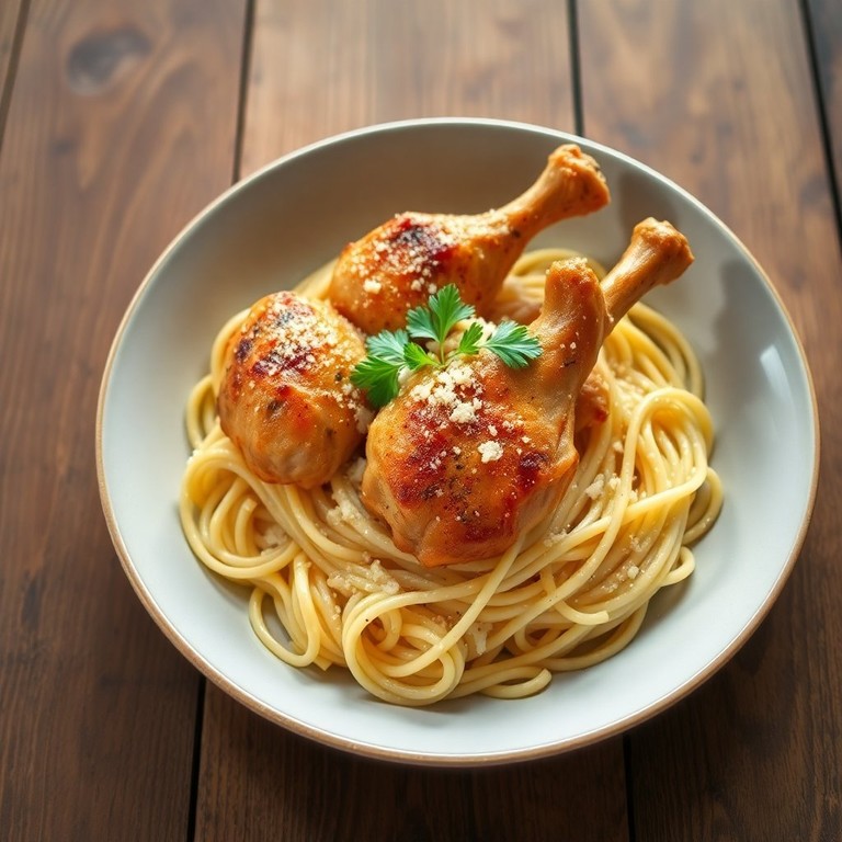 Это блюдо сочетает в себе ароматный чеснок и нежные куриные голени, создавая идеальное сочетание для вашей пасты. Сливочный соус делает блюдо особенно вкусным и сытным.