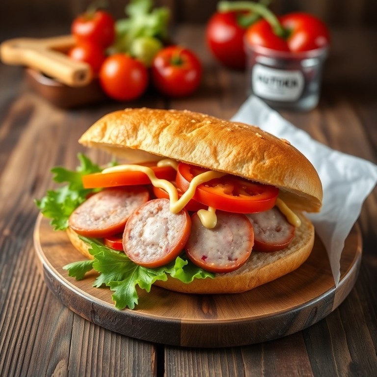 Этот сандвич с колбасой и помидорами - простой и вкусный обед, который легко приготовить. Хрустящий хлеб, свежие овощи и аппетитная начинка делают его идеальным выбором для быстрого перекуса или легкого обеда.