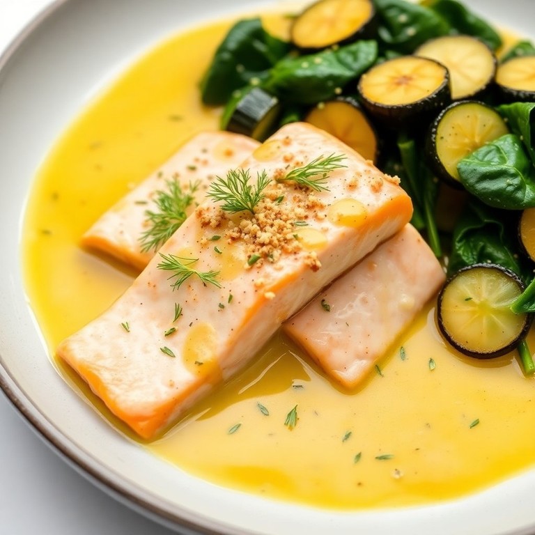 Ein köstliches Gericht mit zartem Lachsfilet in einer aromatischen Orangen-Senf-Soße, verfeinert mit frischem Dill und Dukkah. Perfekt für ein besonderes Abendessen.